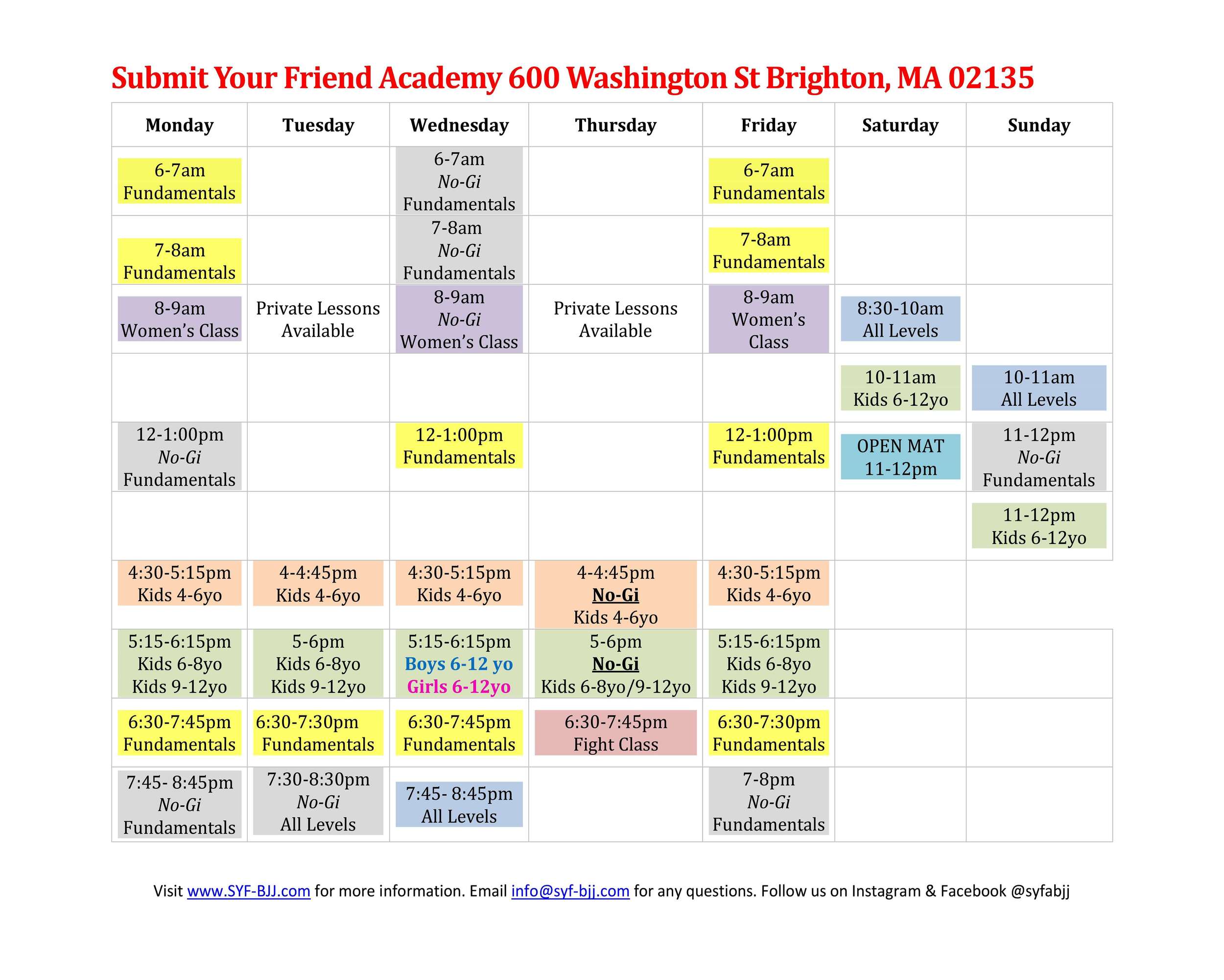Try your first class for free and discover why so many people call Submit Your Friend Academy their second home.